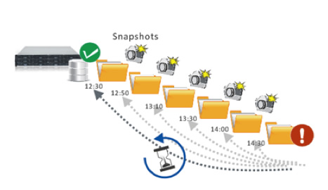 The snapshot feature available on the EonNAS can be used to protect shared folders, iSCSI volumes and system settings. EonNAS supports an unlimited number of snapshots at intervals as short as 10 minutes. In addition, users can automate processes including snapshot creation and pruning. Snapshots will be automatically removed when they reach thresholds in terms of total number of snapshots or retention period.